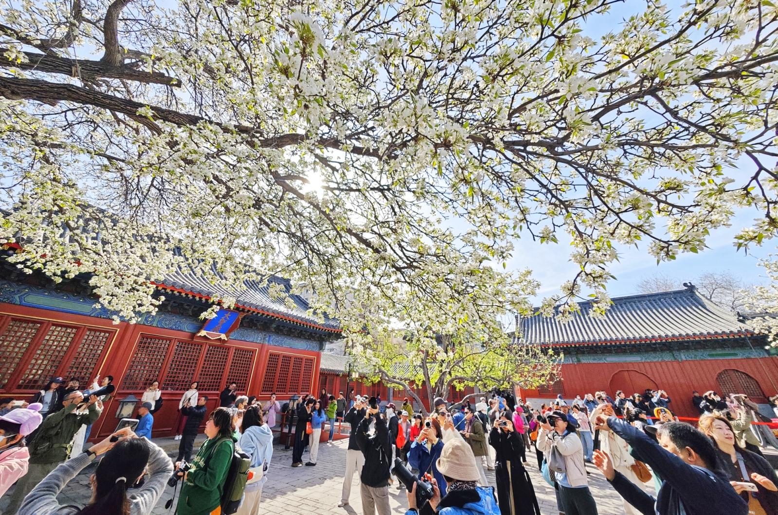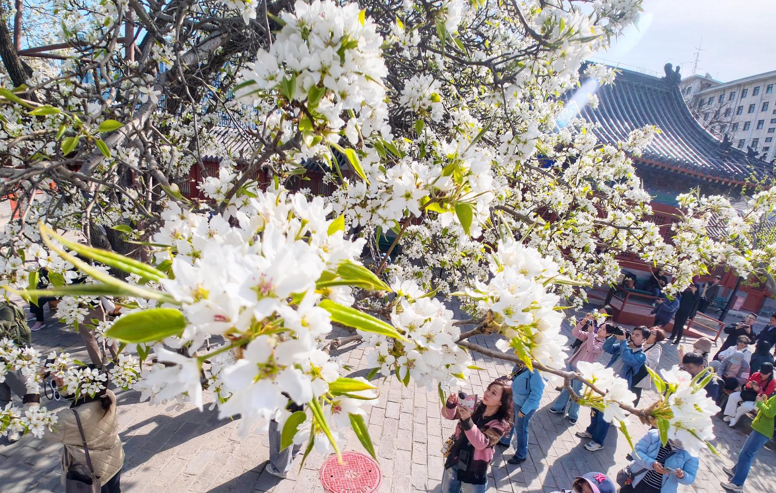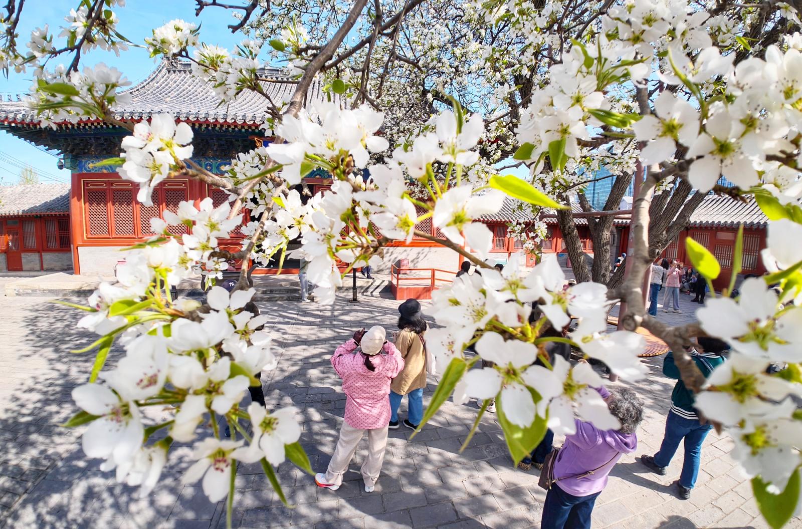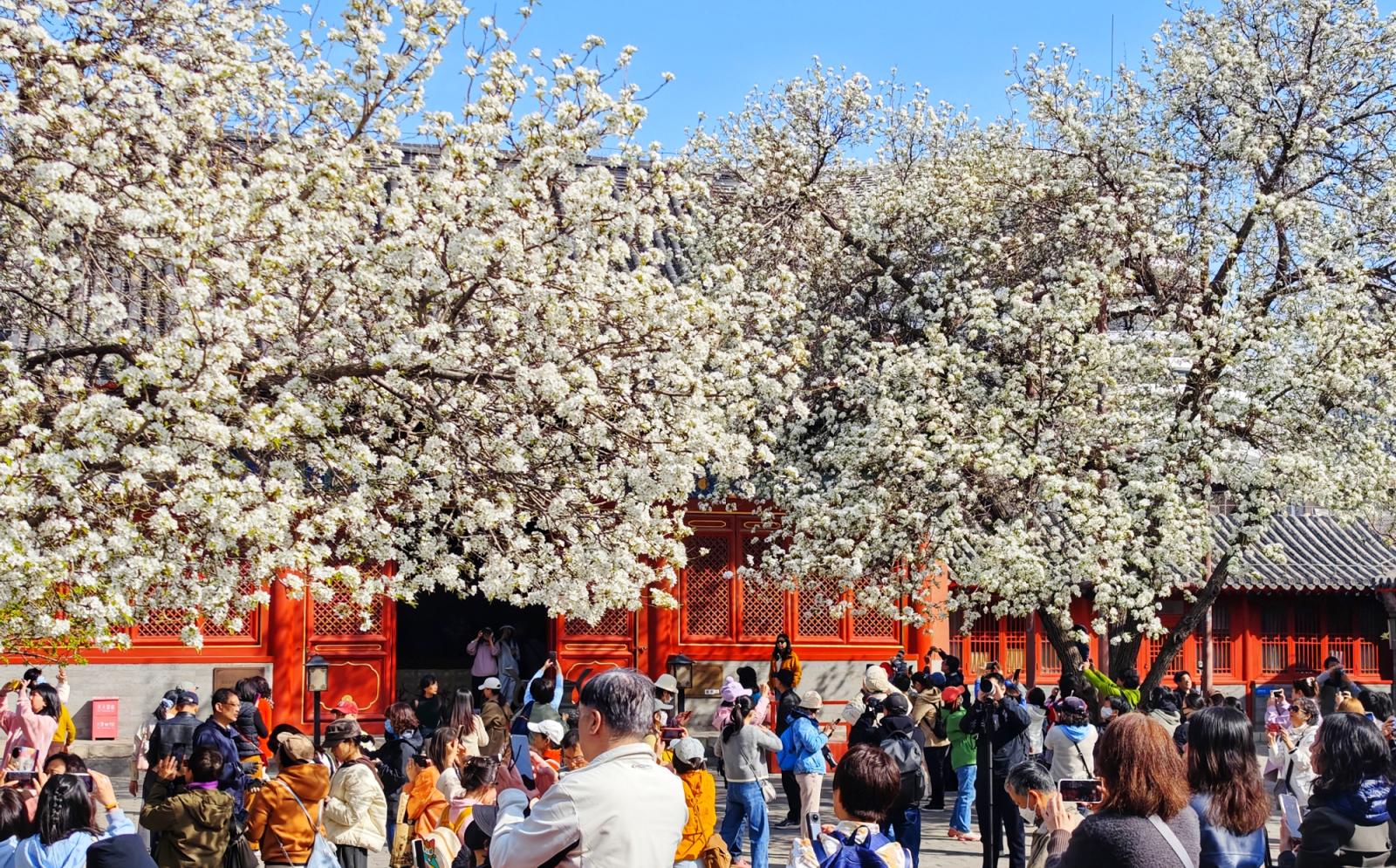 春风送暖,京城春色渐浓。位于东城区禄米仓胡同的智化寺内,两株古梨树如期盛放,雪白梨花缀满枝头,与红墙、古刹相映成趣,勾勒出独属于京城的春日诗意。