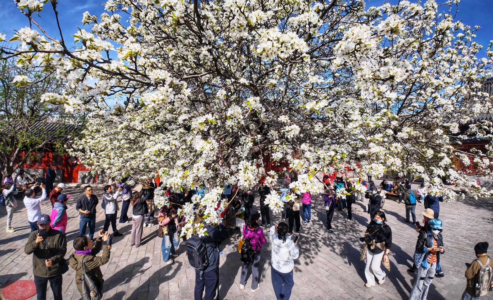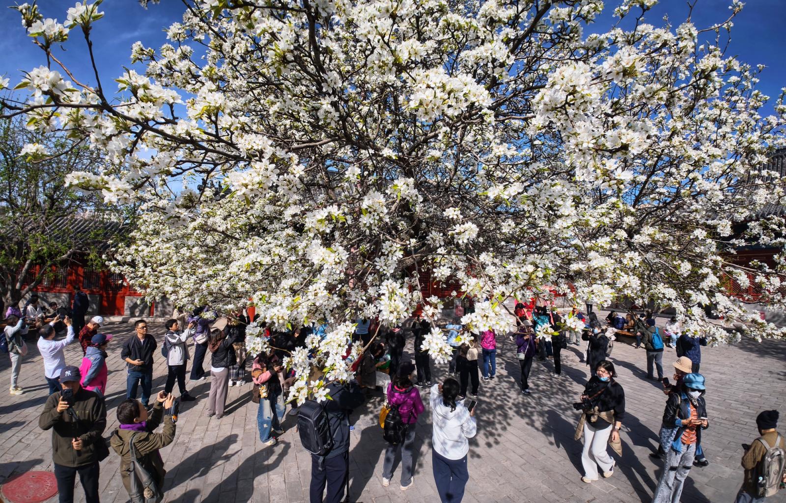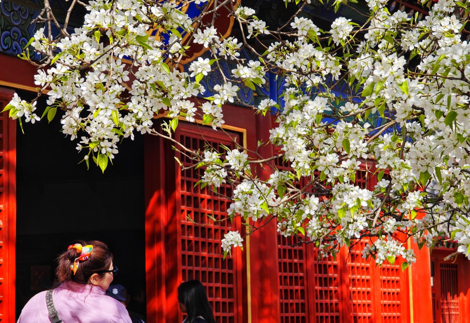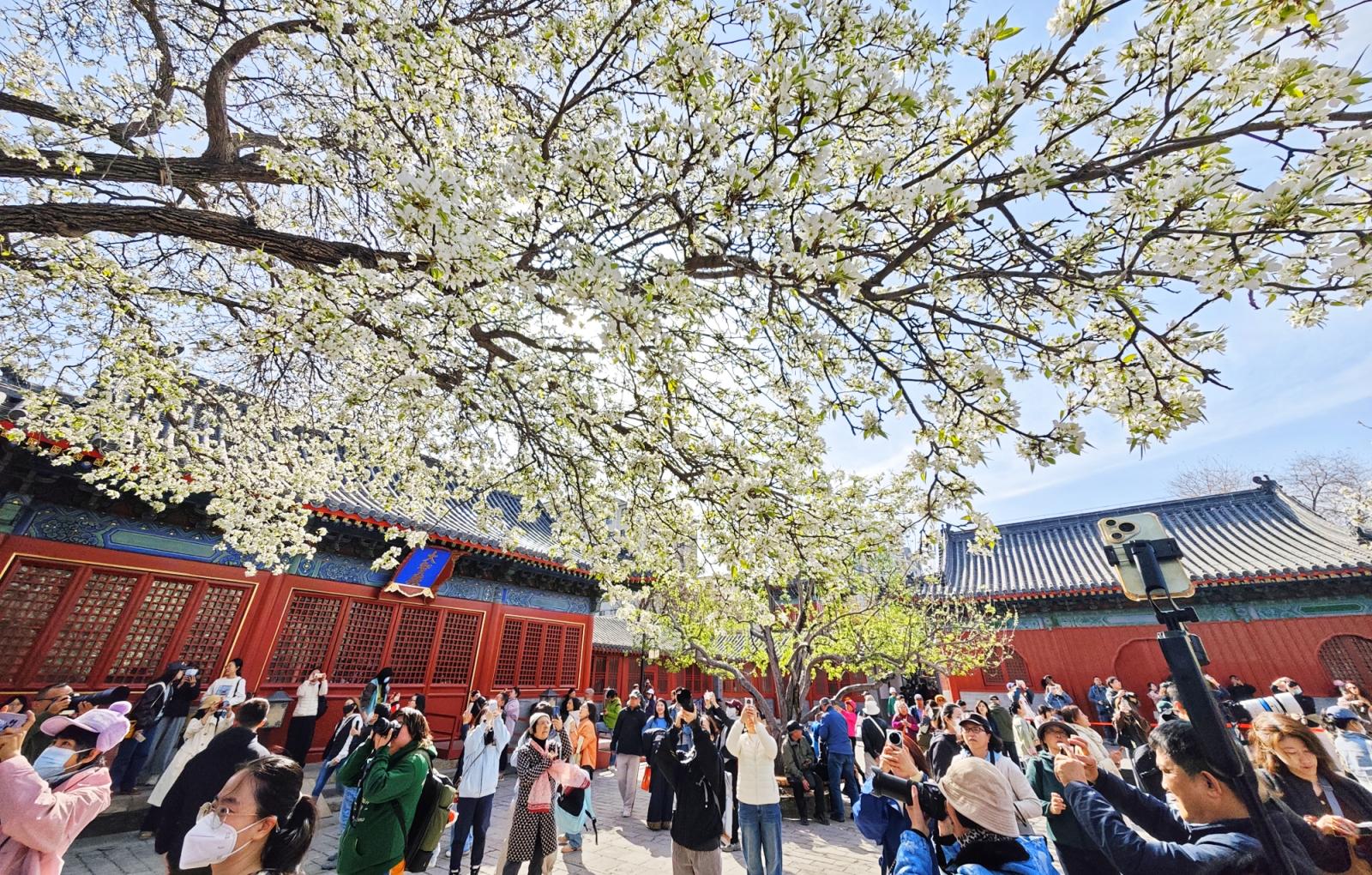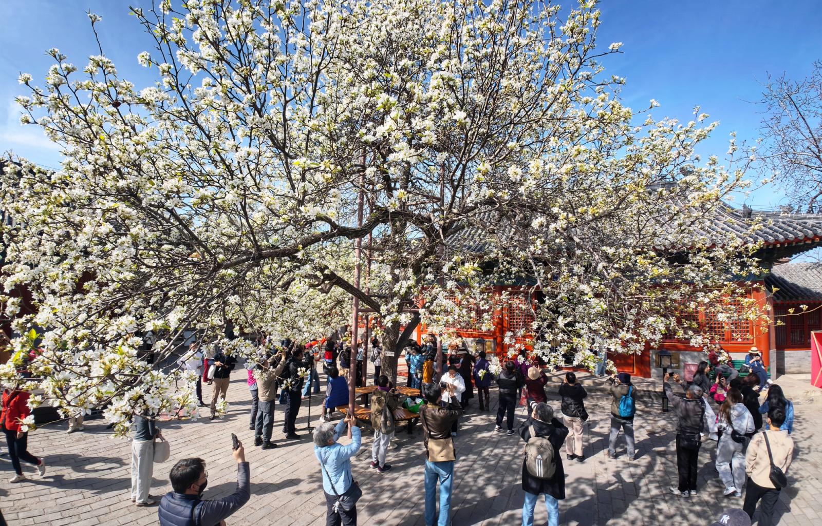 春风送暖,京城春色渐浓。位于东城区禄米仓胡同的智化寺内,两株古梨树如期盛放,雪白梨花缀满枝头,与红墙、古刹相映成趣,勾勒出独属于京城的春日诗意。