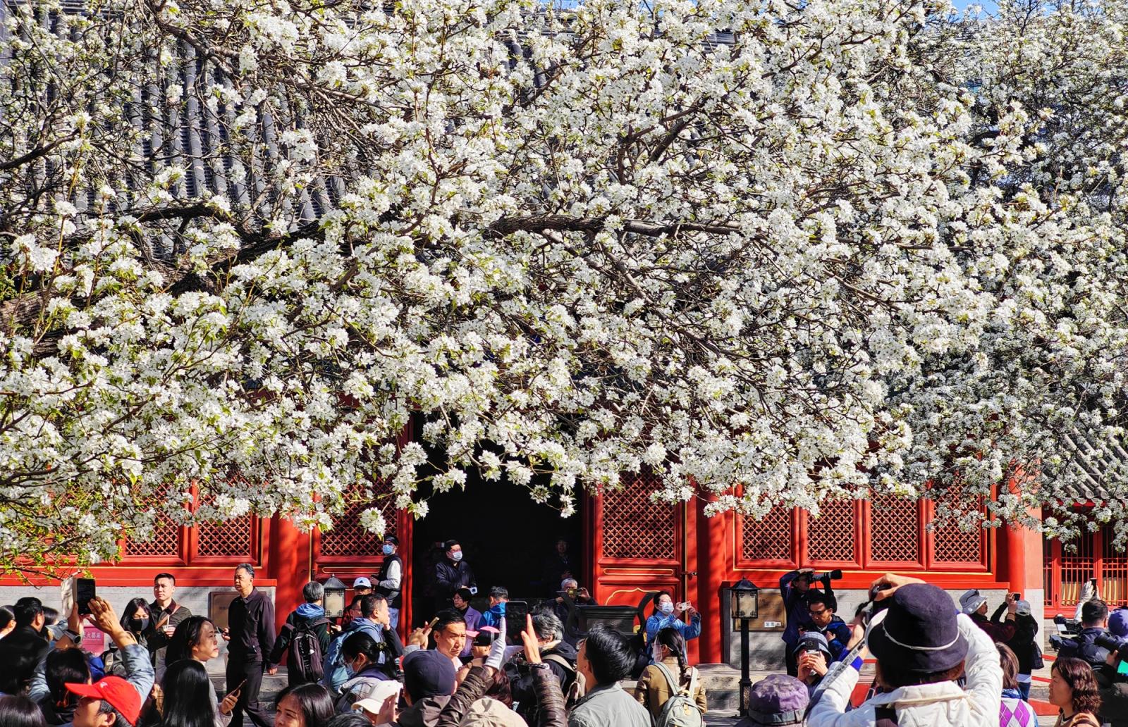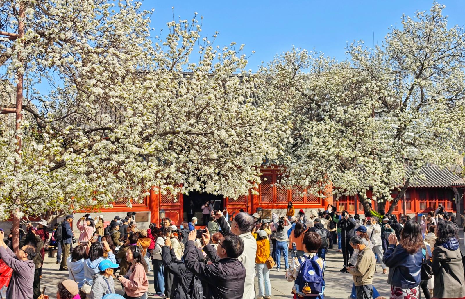 据悉,本次梨花最佳观赏期将持续至4月初,景区实行限流预约参观,市民可通过官方渠道提前预约,错峰前往感受古刹春色。