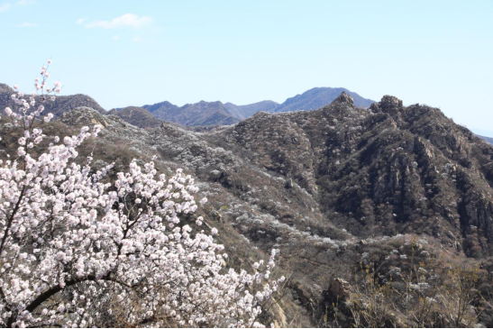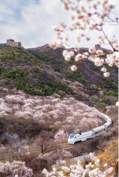 如果说京郊春天有一幅标志性的画面,那一定是居庸关长城脚下,S2线列车穿越漫山花海的景象。居庸关长城素有“花木长城”的美誉,每年3月下旬至4月上旬,粉白的山桃花与杏花如云似雾,缠绕在雄关峻岭之间。