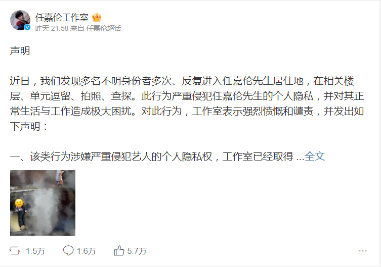 梦澜装饰有限公司 任嘉伦工作室发声明抵制私生行为:绝不姑息