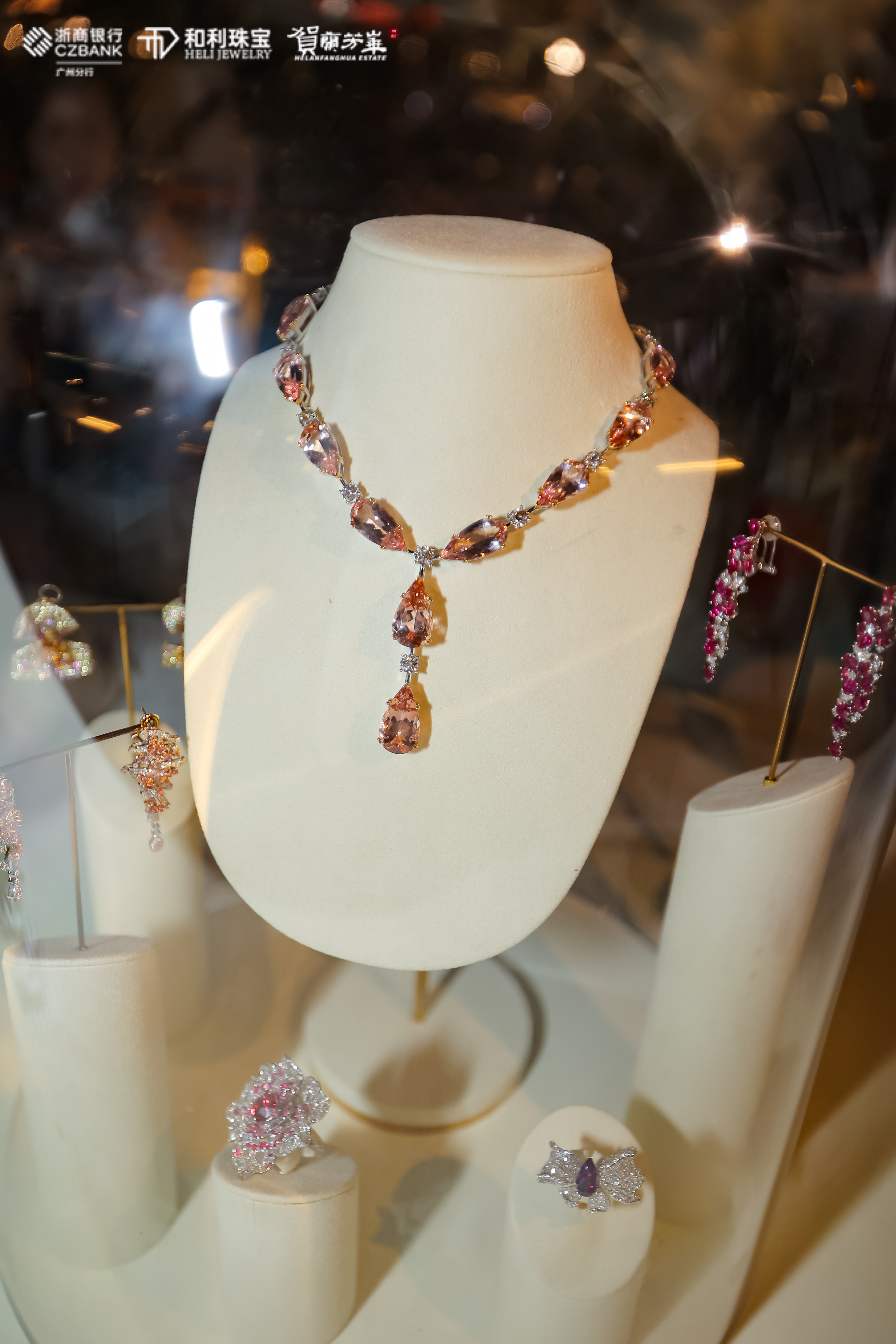 在夜晚的游船上,和利珠宝多件收藏级彩色宝石作品亮相,从祖母绿、蓝宝石、红宝石到近年来火出圈的摩根石,嘉宾得以近距离观赏宝石的火彩与切工,了解宝石产地、颜色等级与收藏逻辑。