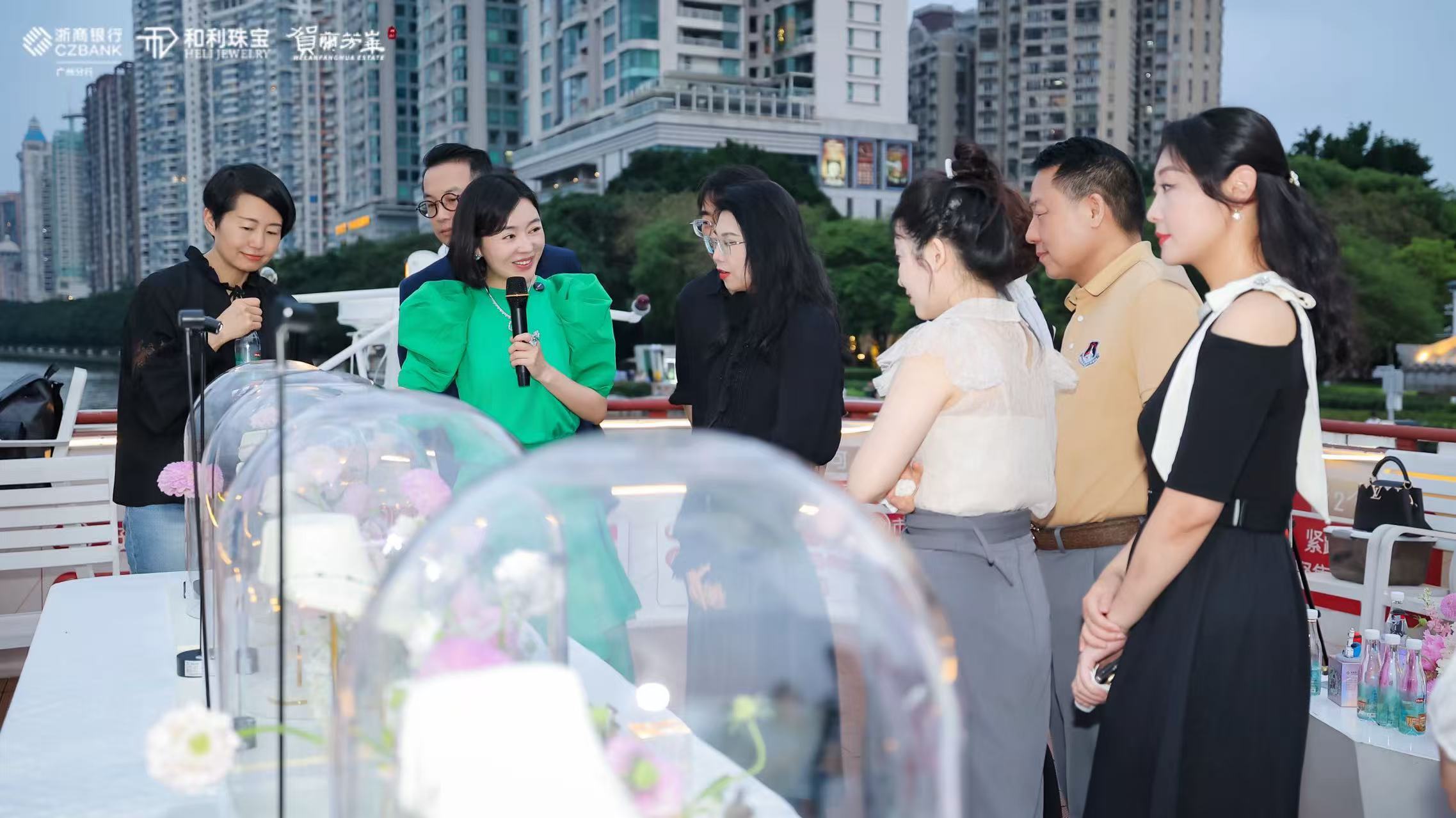 在近三小时的航程中,嘉宾们品鉴美酒、赏阅珠宝、交流财智,更在甲板上饱览广州塔、海心沙等城市地标的璀璨夜景,在轻松的氛围中完成了对“长期主义”价值的共同探讨。